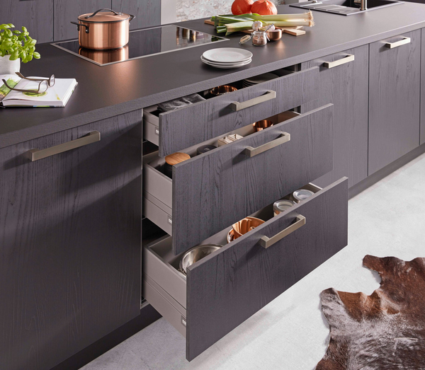 Zapomeňte na bouchání dvířek v kuchyni nebo hlučný dojezd šuplíku při každém zavření. Zásuvky a skříňky s tlumeným dovíráním jsou u kuchyní XXXLutz ve standardní výbavě, což ocení každý, kdo vyznává ticho a funkční design. Mnoho zákazníků preferuje také bezúchytkové otevírání, tzv. push to open systém, které lze řešit magnety nebo panty s pružinou pro plynulé dovírání.